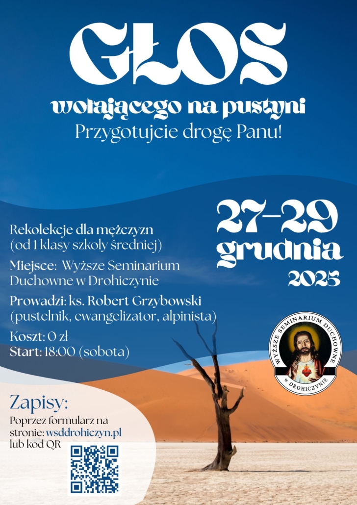 W dniach 27 – 29 grudnia w Wyższym Seminarium Duchownym w Drohiczynie organizowane są rekolekcje dla młodzieży męskiej ze szkół średnich i młodzieży pomaturalnej.
